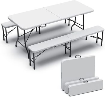 Juego de tienda de cerveza, barra plegable, Juego de 3 piezas, 1 mesa de cerveza, 2 bancos de cerveza, juego de marquesina, juego de jardín, juego de camping, mesa plegable